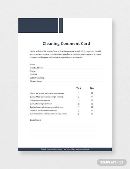 Free 11 Comment Card Templates In Ai Ms Word Pages Psd