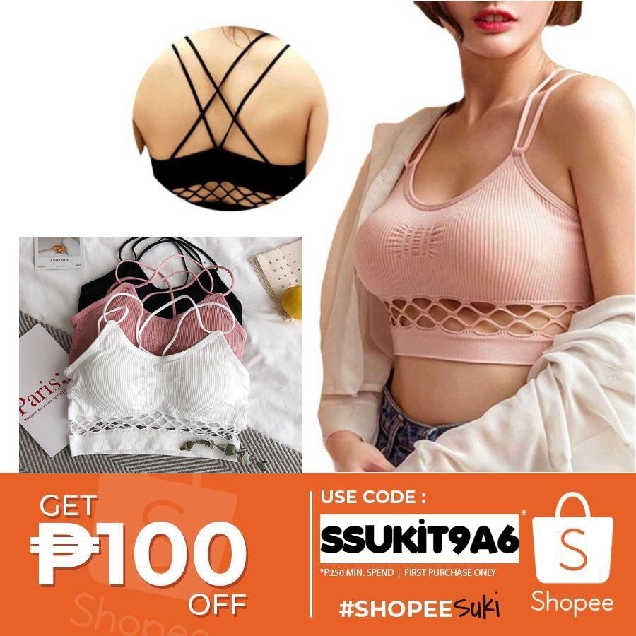 2 Strap Criss Cross Back Wireless Padded Bralette Bra Shopee