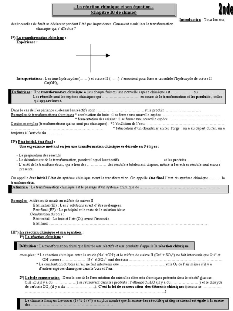 Chapitre 3 Les Transformations Chimiques Site De Physiqueraspail