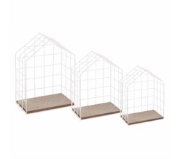 Set 3 Etageres Maison En Bois Brut 24x23cm 27x25cm 30x29 5cm Pas