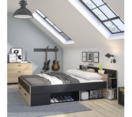 Lit Avec Rangements 140x190 Cm Tonight Style Industriel Imitation