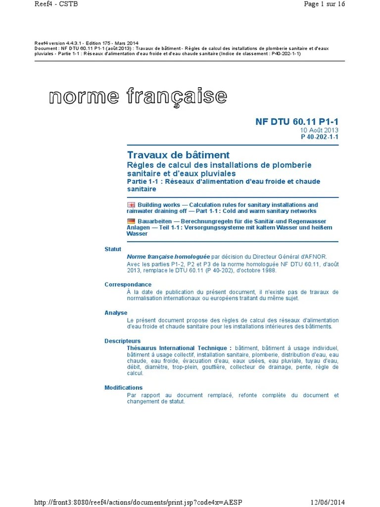 Dtu 60 11 Calcul Installation Plomberie Plomberie Tuyau