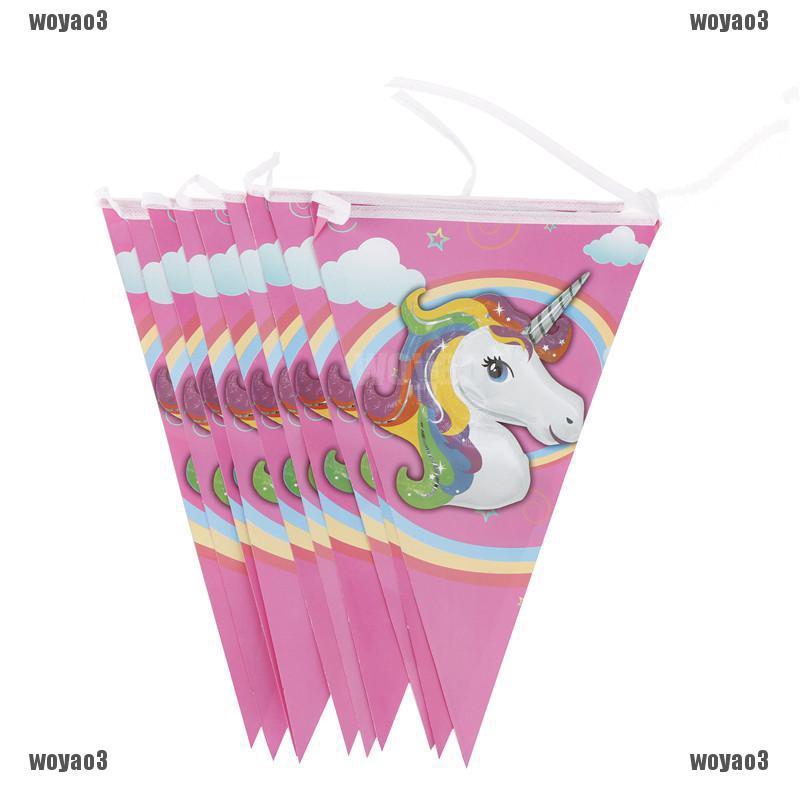 Wo 10pcs Unicorn Flags Hanging Paper Flags Banner Garland For